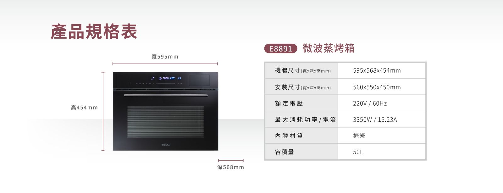 【櫻花SAKURA】E8891 嵌入式微波蒸烤箱