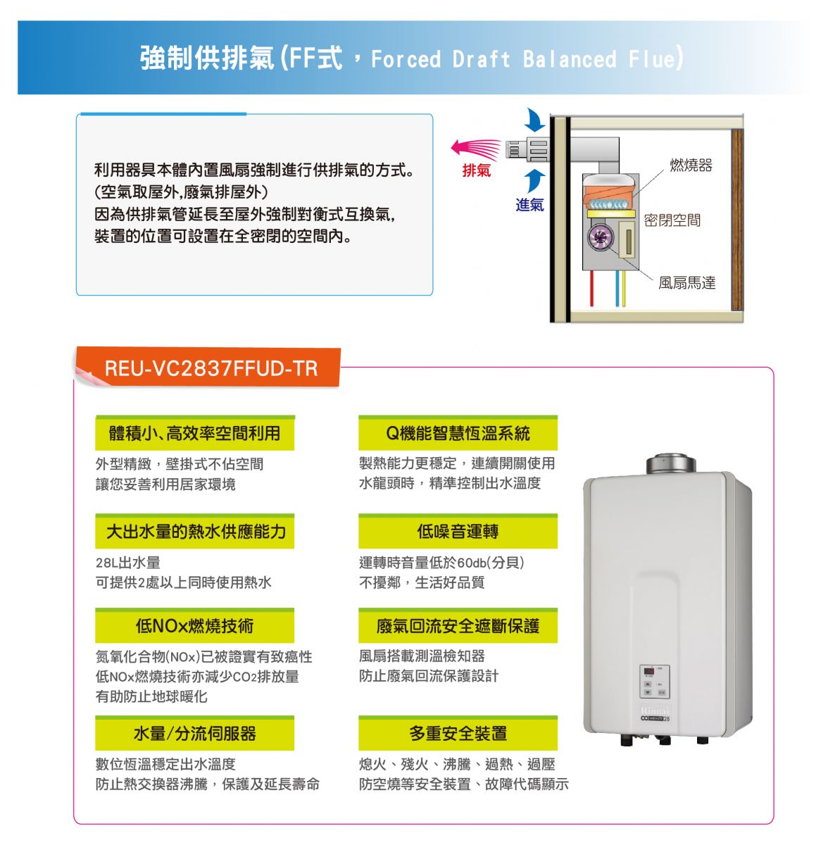 【林內Rinnai】 REU-VC2837FFUD-TR 日本進口28公升屋內型強制供排氣型熱水器