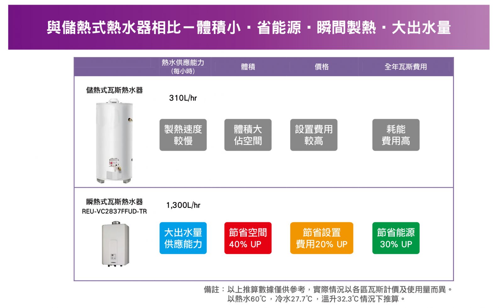 熱  水  器:購買前請先確認--住家使用瓦斯類型、使用空間(戶外或室內)、水流量大小。