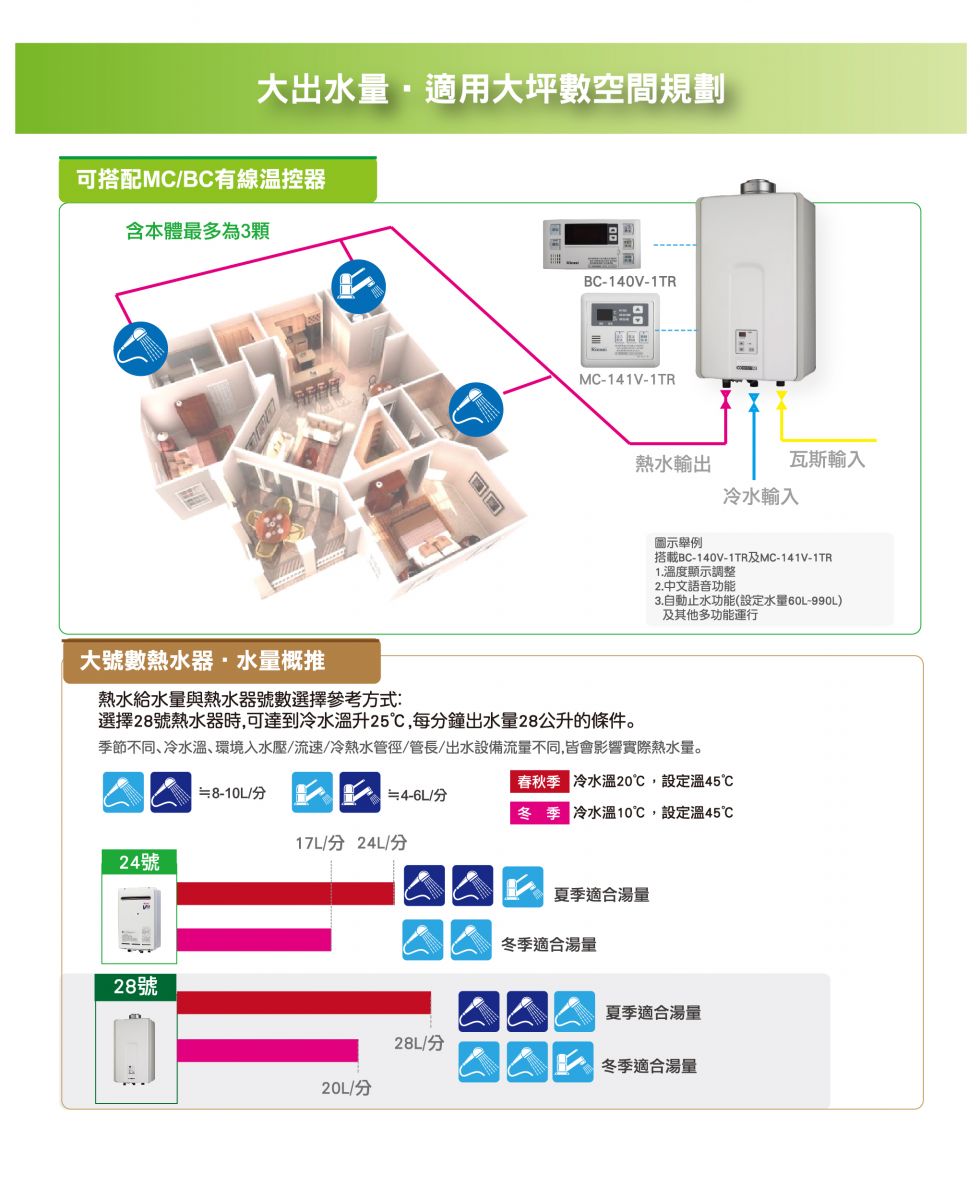 28L/min大出水量的熱水供應能力