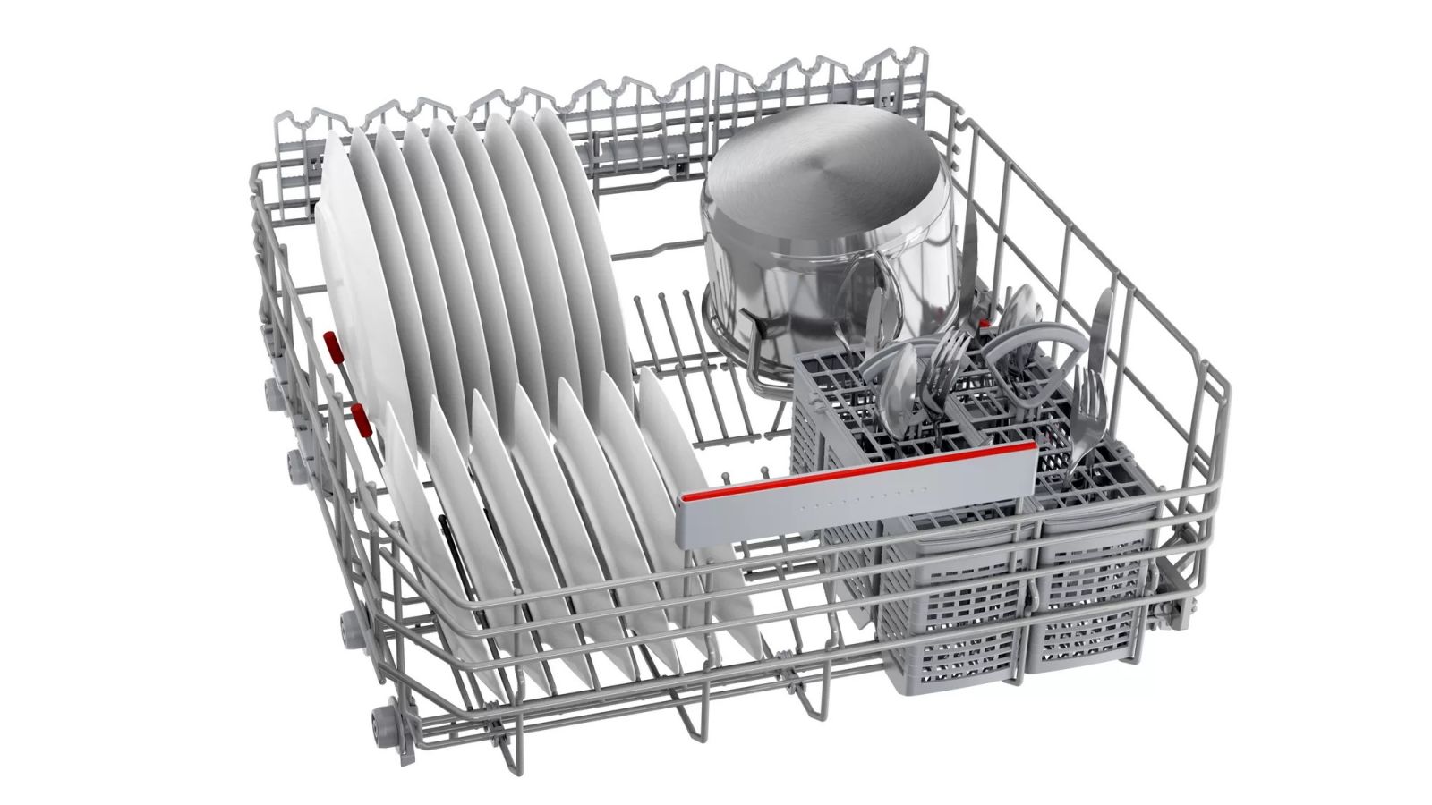 Rackmatic上碗籃3段式調整: 靈活調整,為大型餐具提供足夠空間。