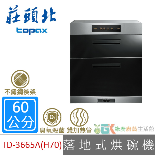 【莊頭北TOPAX】TD-3665A(H70cm) 速乾型臭氧殺菌落地式烘碗機