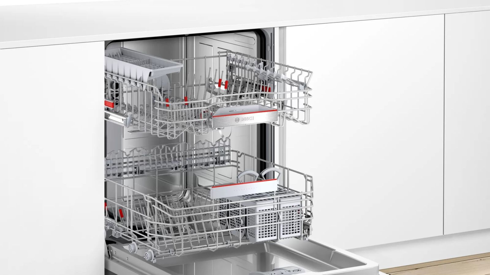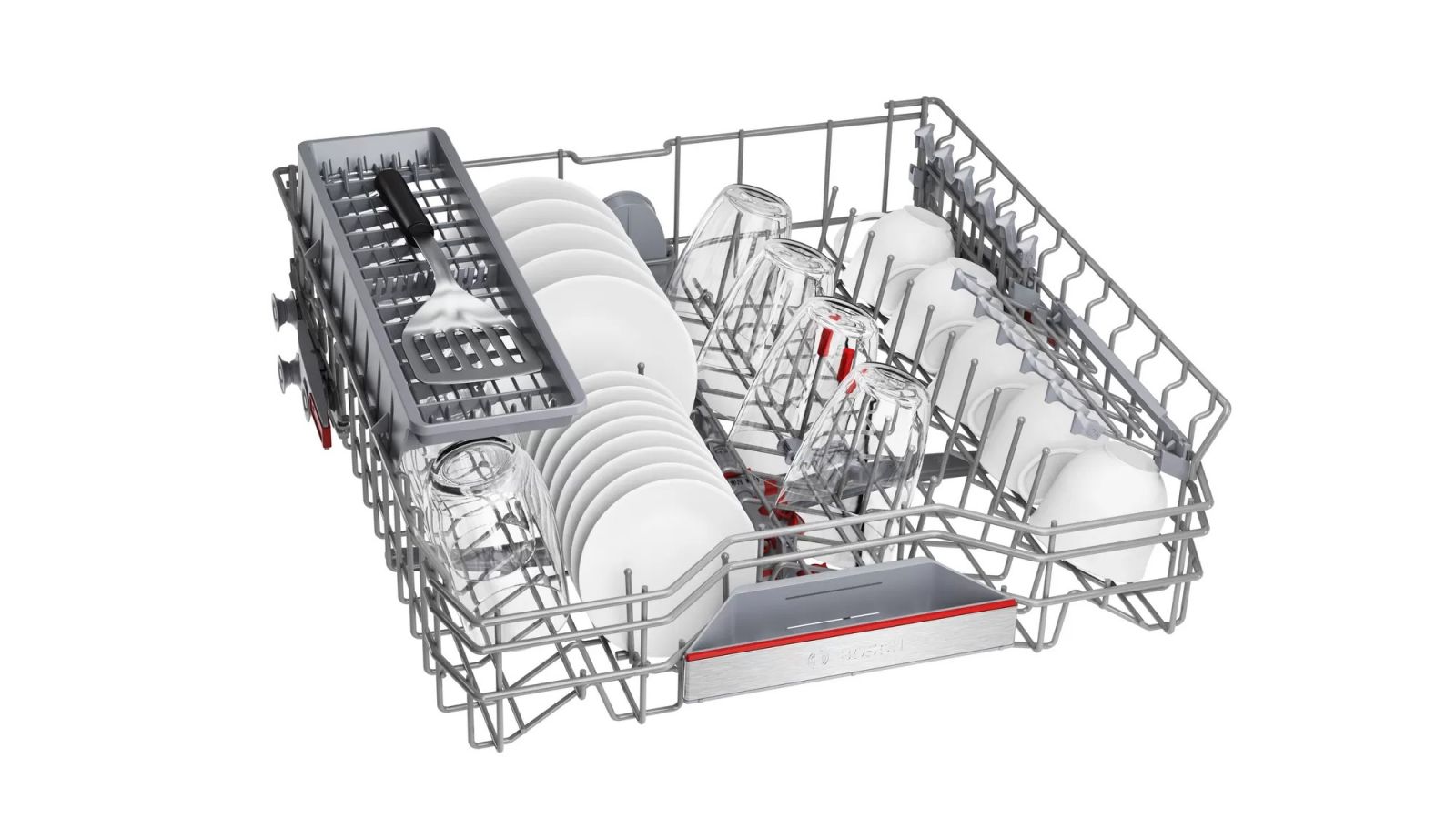 Rackmatic上碗籃3段式調整: 靈活調整,為大型餐具提供足夠空間。