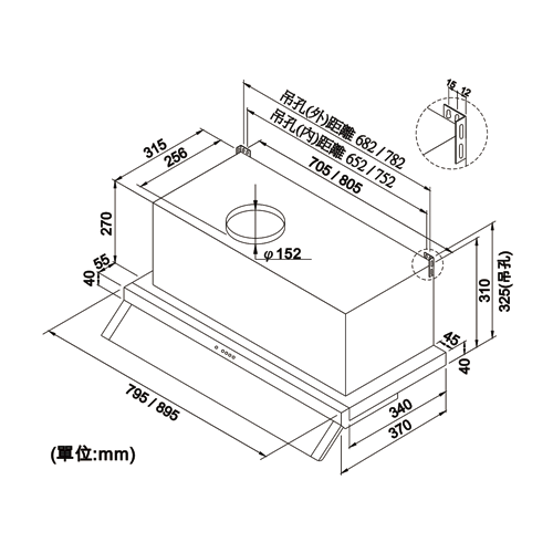 雙腔攏煙隱藏式排油煙機規格表