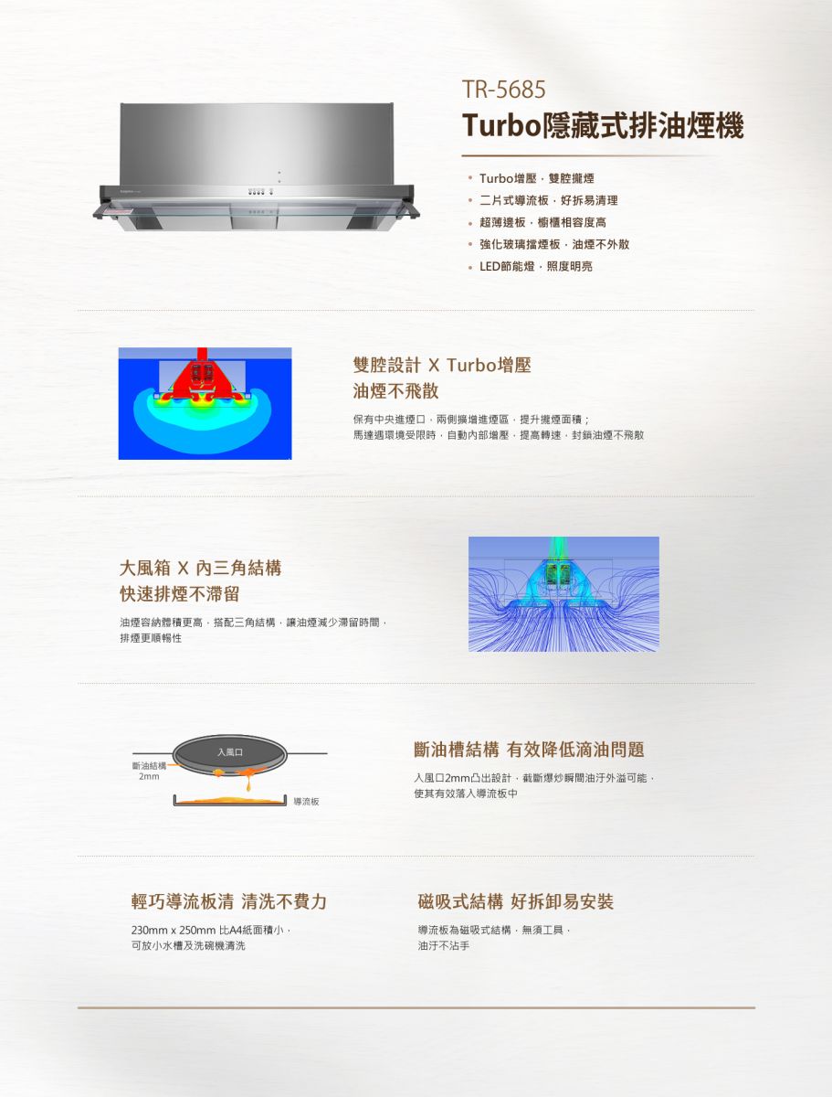 【莊頭北TOPAX】 TR-5685(80cm) 雙腔攏煙隱藏式排油煙機