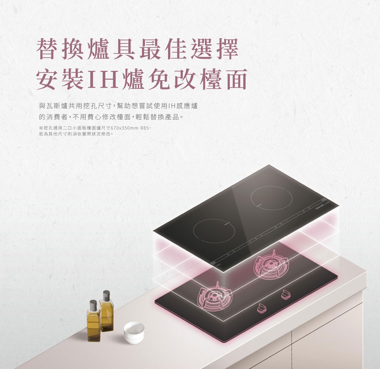 ▪ 挖孔與雙口小面板檯面爐通用,替換免改檯面