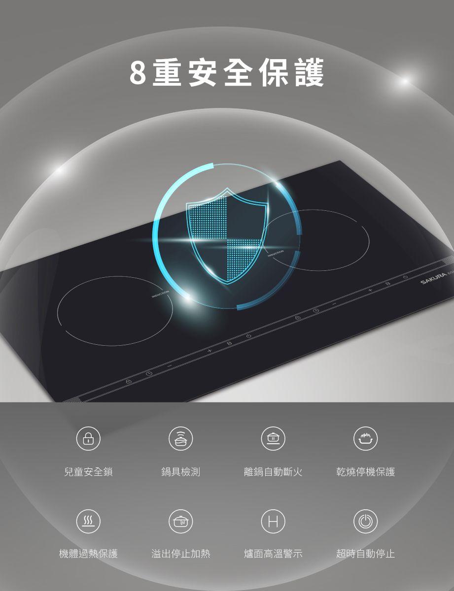 ▪ 自動鍋具檢測,無鍋具即停止加熱