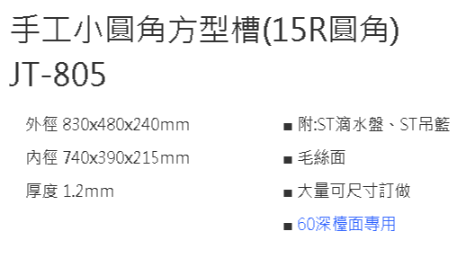 【傑泰不鏽鋼Jye Tay】JT-805-(15R圓角) 手工小圓角方型槽