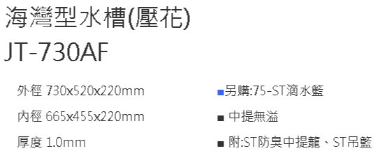 綠廚-傑泰不鏽鋼Jye Tay-JT-730AF-壓花海灣型水槽