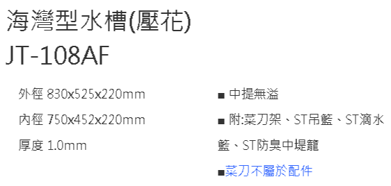 綠廚-傑泰不鏽鋼Jye Tay-JT-108AF-壓花多功能海灣槽