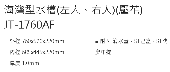 綠廚-傑泰不鏽鋼Jye Tay-JT-1760AF-壓花海灣型水槽
