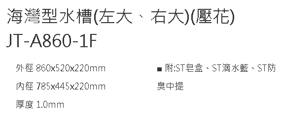 綠廚-傑泰不鏽鋼Jye Tay-JT-A860-1F-壓花海灣型(只有左大)