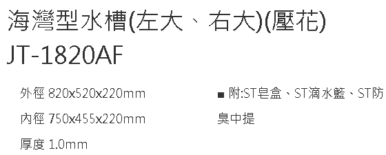 綠廚-傑泰不鏽鋼Jye Tay-JT-1820AF-壓花海灣型水槽