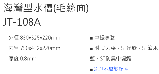 【傑泰不鏽鋼Jye Tay】JT-108A-毛絲面多功能海灣槽
