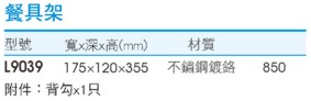 綠廚-KING BOSS-L9039-ST橫桿不鏽鋼餐具架
