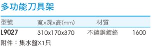 綠廚-KING BOSS-L9027-ST橫桿不鏽鋼多功能刀具架