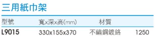 綠廚-KING BOSS-L9015-ST橫桿不鏽鋼三用紙巾架