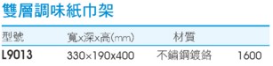 綠廚-KING BOSS-L9013-ST橫桿不鏽鋼雙層調味紙巾架