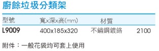 綠廚-KING BOSS-L9009-ST橫桿不鏽鋼廚餘垃圾分類架