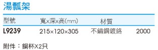 綠廚-KING BOSS-L9239-ST橫桿不鏽鋼湯瓢架